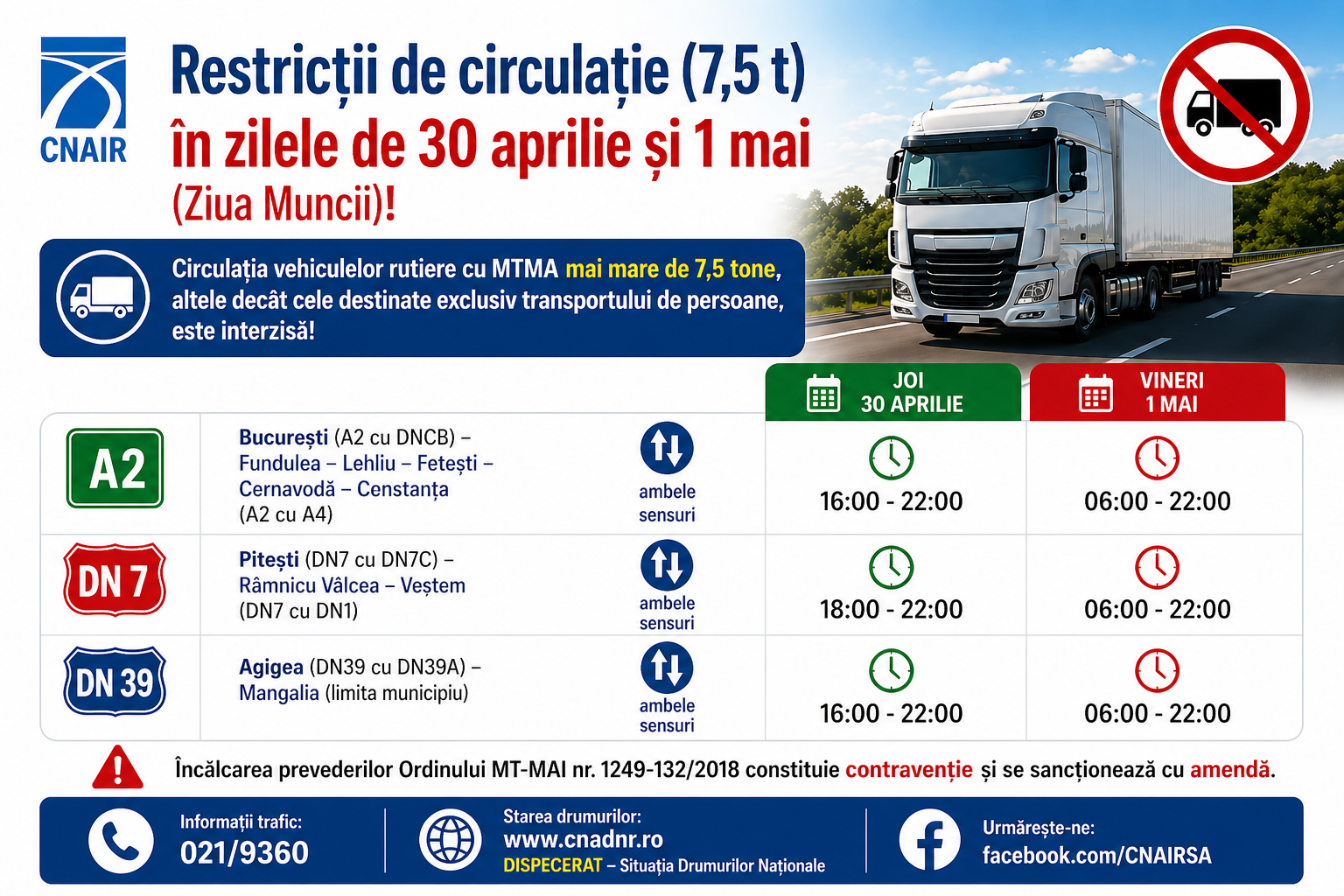 • Restricții de circulație pe Autostrada A1, pe sensul Pitești – Sibiu