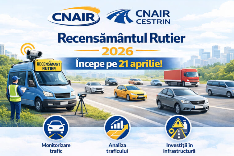 Compania Națională de Administrare a Infrastructurii Rutiere anunță demararea, începând cu data de 21 aprilie, a Recensământului General de Circulație Rutieră, o acțiune considerată esențială pentru planificarea și dezvoltarea rețelei de transport din România.