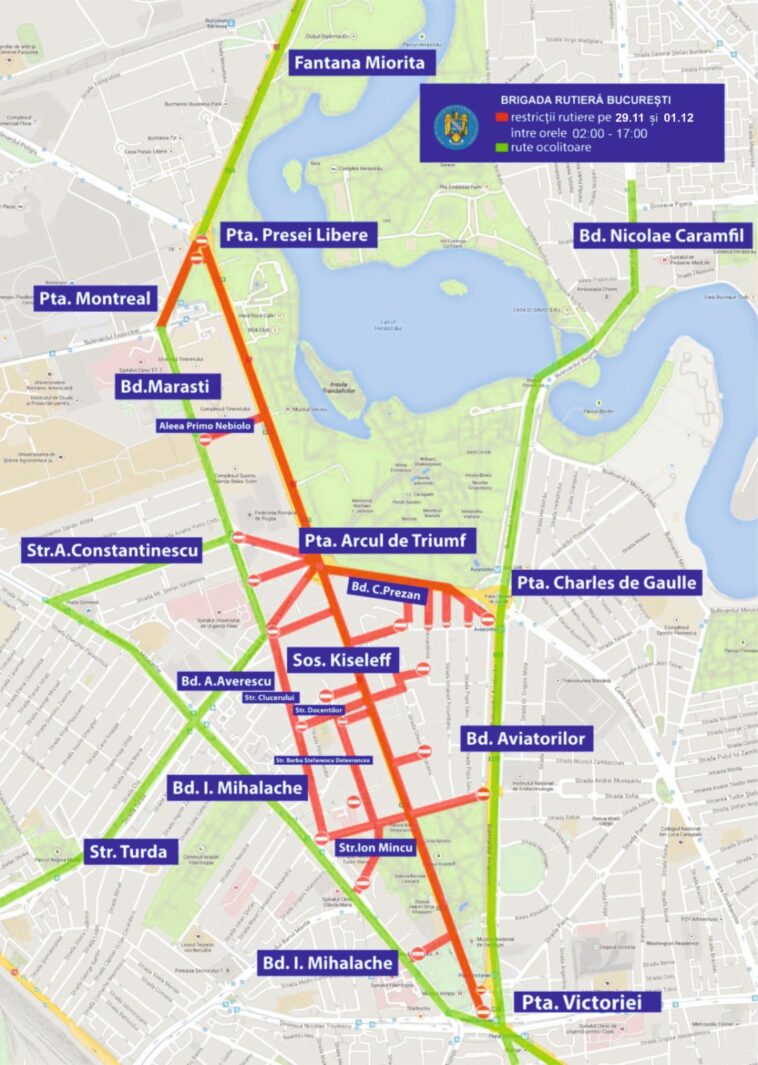 De asemenea, circulația va fi restricționată pe străzile Arh. Ion Mincu, Barbu Delavrancea, Nicolae Ionescu, Ady Endre, Sg. Vasile Dorobanțu, Docenților, Mahatma Gandhi, Petofi Sandor, precum și pe Strada Clucerului, Strada Gheorghe Brătianu, Strada Uruguay, Strada Monetăriei și Aleea Primo Nebiolo.
